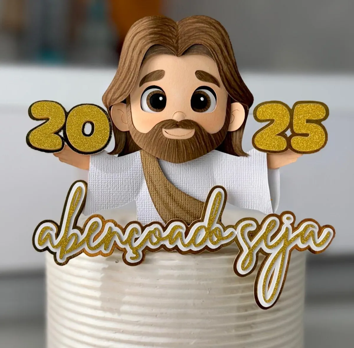 Basta abrir o arquivo no Silhouette Studio, ajustar o tamanho e cores conforme desejado, cortar e aplicar sobre o bolo ou suporte de sua preferência. Com este topo de bolo digital, você transforma a mesa do bolo em um ponto alto da celebração, transmitindo carinho, fé e elegância para todos os convidados.